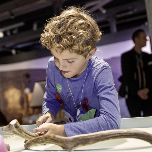 Interaktive Medienstationen und Hands-on-Angebote laden kleine und grosse Besuchende dazu ein,selbst aktiv zu werden und in das Leben vor 17 000 Jahren einzutauchen: