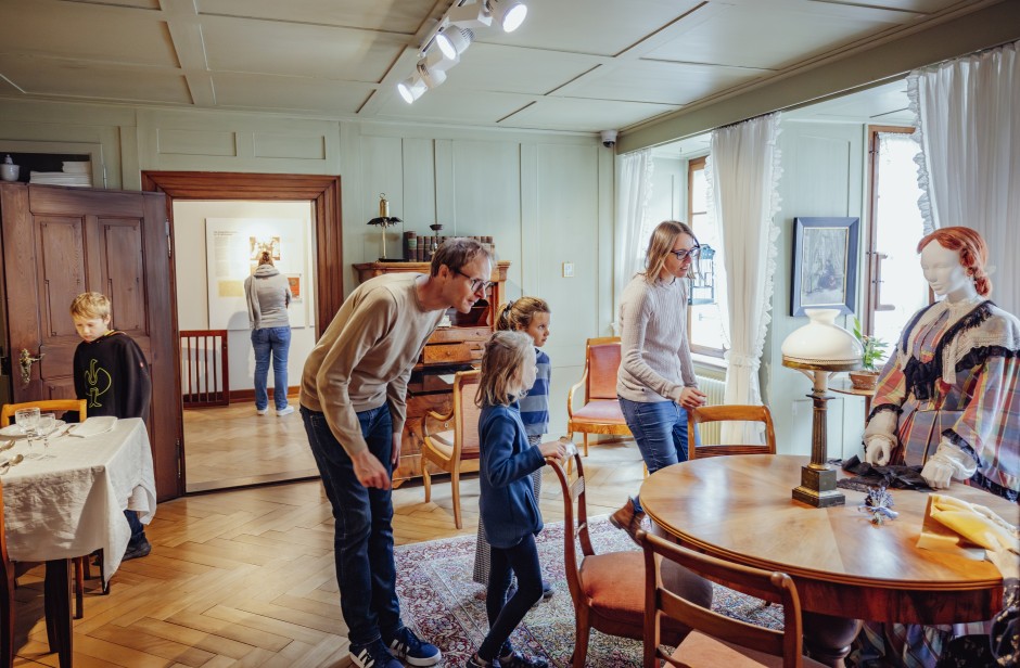 Ein besonderes Erlebnis ist das Spielzimmer. Nach Herzenslust dürfen grosse und kleine Museumsgäste hier alles ausprobieren. Mit Zylinder und Weste oder in bodenlangen Kleidern in das Leben von früher schlüpfen, historische Spiele entdecken und auf Strohmatratzen Probe liegen.
